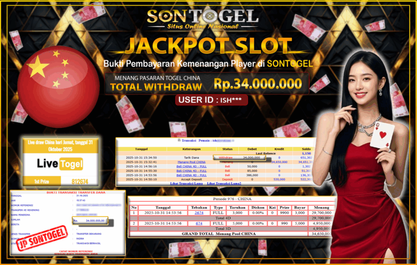BUKTI JP SONTOGEL – Situs Togel Online, Live Casino dan Slot Online Terpercaya yang terbukti membayar berapapun kemenangan Anda tanpa kekurangan sepeserpun. Jika Anda masih mencari Situs Terpercaya, jangan ragu untuk bermain di SONTOGEL. Dalam 1 akun Anda bisa menikmati semua permainan dengan minimal deposit hanya Rp. 5.000,- saja.