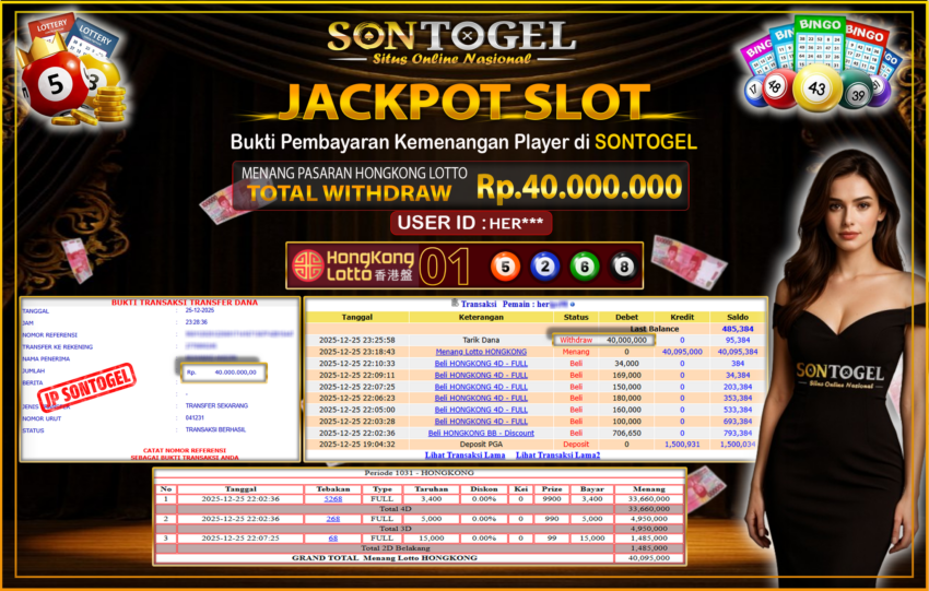 BUKTI JP SONTOGEL – Situs Togel Online, Live Casino dan Slot Online Terpercaya yang terbukti membayar berapapun kemenangan Anda tanpa kekurangan sepeserpun. Jika Anda masih mencari Situs Terpercaya,  jangan ragu untuk bermain di SONTOGEL. Dalam 1 akun Anda bisa menikmati semua permainan dengan minimal deposit hanya Rp. 5.000,- saja.