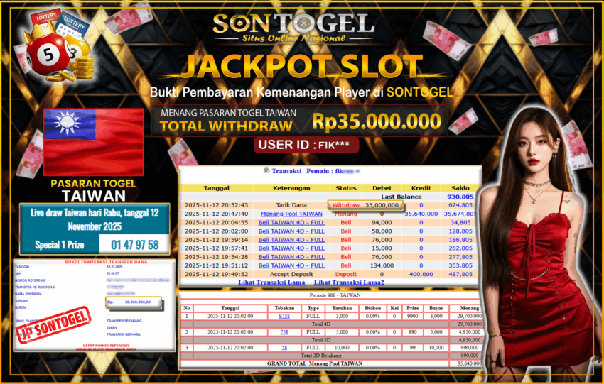 • JP SONTOGEL PASARAN TAIWAN Rp.33.500.000