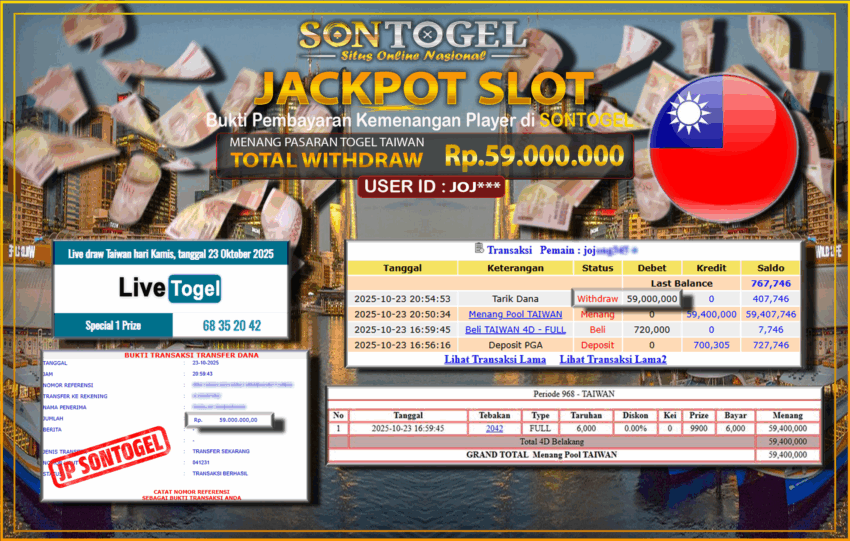 JP SONTOGEL PASARAN TAIWAN Rp.59.000.000