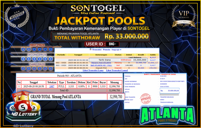 JP SONTOGEL PASARAN TOGEL ATLANTA Rp.33.000.000