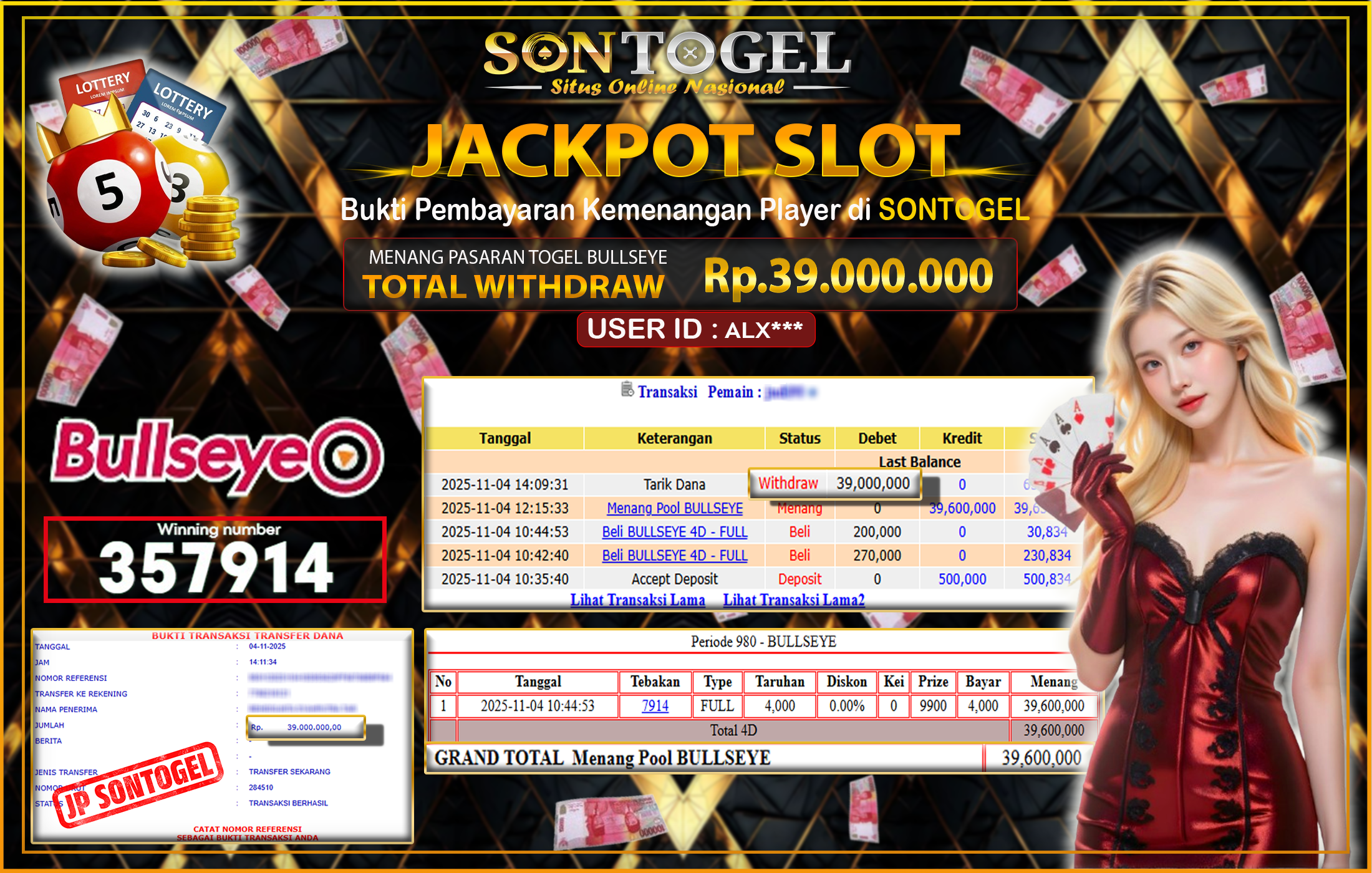 JP SONTOGEL PASARAN TOGEL BULLSEYE Rp.39.000.000