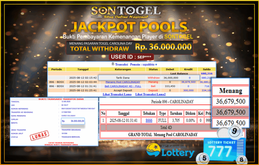 Selamat Kepada Member SONTOGEL dengan USER ID :SEP*** PASARAN TOGEL CAROLINA DAY sebesar RP.36.000.000,- LUNAS langsung di transfer ke rekening member tanpa kurang sepeserpun. Terimakasih telah mempercayakan SONTOGEL sebagai Situs Online Terpercaya dan Aman! Jangan tunggu tunggu lagi! langsung saja daftarkan akun bermain di SONTOGEL dan dapatkan bonus berlimpah setiap minggunya.