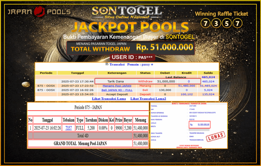 Berikut ini adalah BUKTI JP SONTOGEL yang sudah diproseskan ke rekening member kami