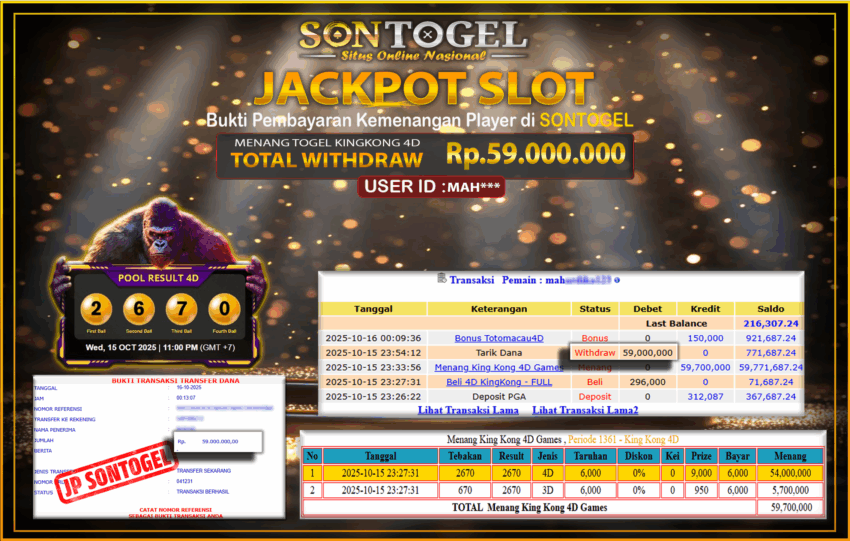 JP SONTOGEL PASARAN TOGEL KINGKONG Rp.59.000.000