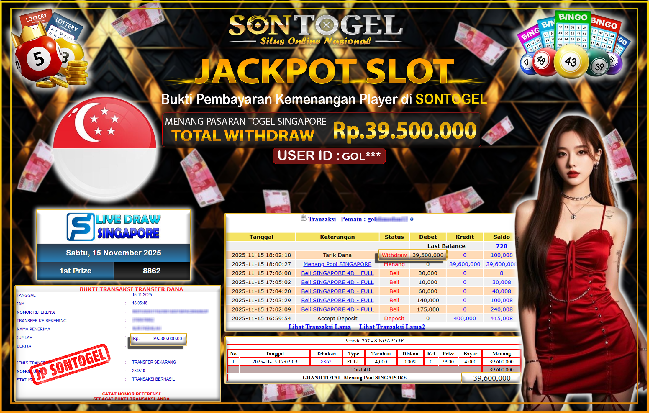 BUKTI JP SONTOGEL – Situs Togel Online, Live Casino dan Slot Online Terpercaya yang terbukti membayar berapapun kemenangan Anda tanpa kekurangan sepeserpun. Jika Anda masih mencari Situs Terpercaya, jangan ragu untuk bermain di SONTOGEL. Dalam 1 akun Anda bisa menikmati semua permainan dengan minimal deposit hanya Rp. 5.000,- saja.