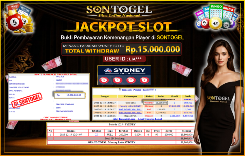BUKTI JP SONTOGEL – Situs Togel Online, Live Casino dan Slot Online Terpercaya yang terbukti membayar berapapun kemenangan Anda tanpa kekurangan sepeserpun. Jika Anda masih mencari Situs Terpercaya,  jangan ragu untuk bermain di SONTOGEL. Dalam 1 akun Anda bisa menikmati semua permainan dengan minimal deposit hanya Rp. 5.000,- saja.