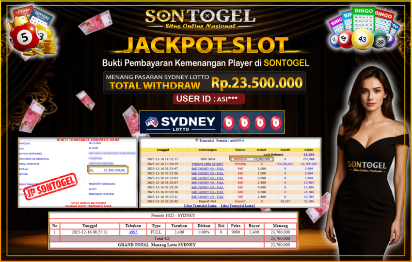 BUKTI JP SONTOGEL – Situs Togel Online, Live Casino dan Slot Online Terpercaya yang terbukti membayar berapapun kemenangan Anda tanpa kekurangan sepeserpun. Jika Anda masih mencari Situs Terpercaya,  jangan ragu untuk bermain di SONTOGEL. Dalam 1 akun Anda bisa menikmati semua permainan dengan minimal deposit hanya Rp. 5.000,- saja.