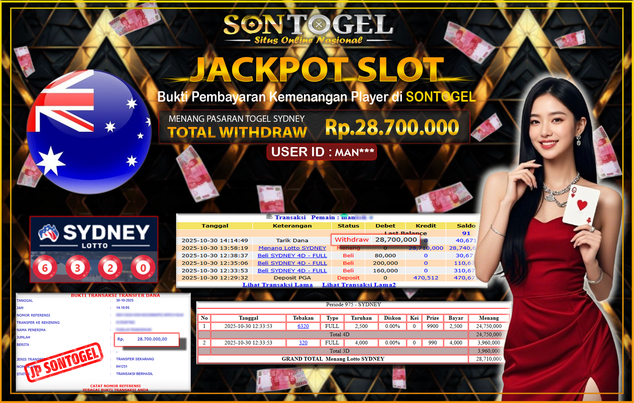 BUKTI JP SONTOGEL – Situs Togel Online, Live Casino dan Slot Online Terpercaya yang terbukti membayar berapapun kemenangan Anda tanpa kekurangan sepeserpun. Jika Anda masih mencari Situs Terpercaya, jangan ragu untuk bermain di SONTOGEL. Dalam 1 akun Anda bisa menikmati semua permainan dengan minimal deposit hanya Rp. 5.000,- saja.