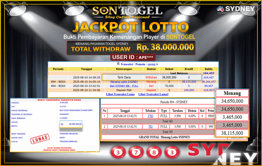 Berikut ini adalah BUKTI JP SONTOGEL yang sudah diproseskan ke rekening member kami