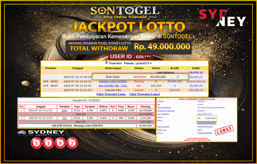 Berikut ini adalah BUKTI JP SONTOGEL yang sudah diproseskan ke rekening member kami