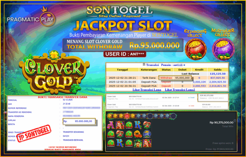 JP SONTOGEL SLOT CLOVER GOLD Rp.95.000.000