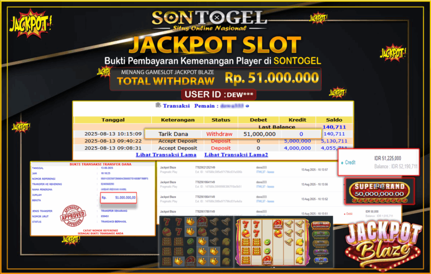JP SONTOGEL SLOT JACKPOT BLAZE Rp.51.000.000