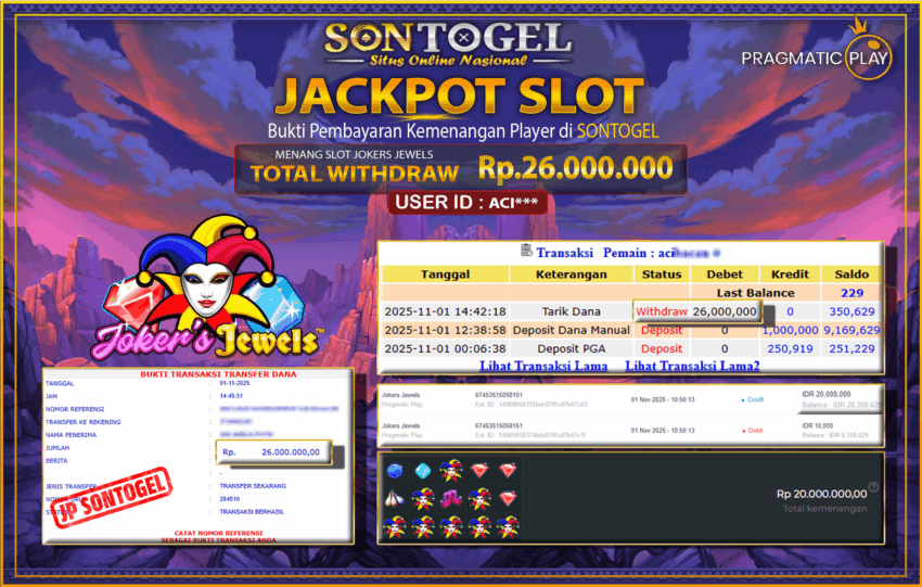 Berikut ini adalah BUKTI JP SONTOGEL yang sudah diproseskan ke rekening member kami