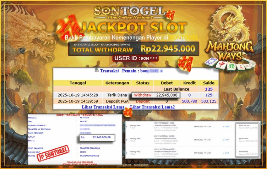 JP SONTOGEL SLOT MAHJONG WAYS Rp.22.945.000