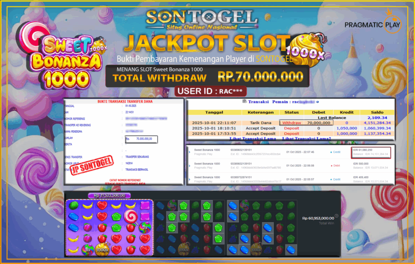 Berikut ini adalah BUKTI JP SONTOGEL yang sudah diproseskan ke rekening member kami