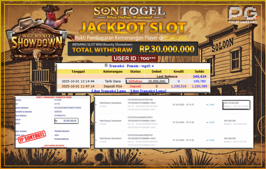 Berikut ini adalah BUKTI JP SONTOGEL yang sudah diproseskan ke rekening member kami