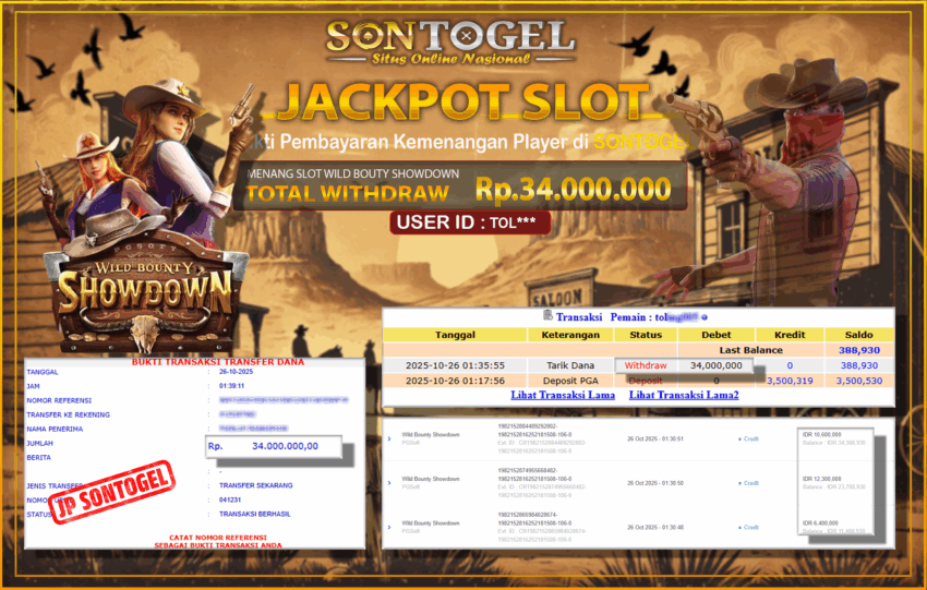JP SONTOGEL SLOT WILD BOUNTY Rp.34.000.000