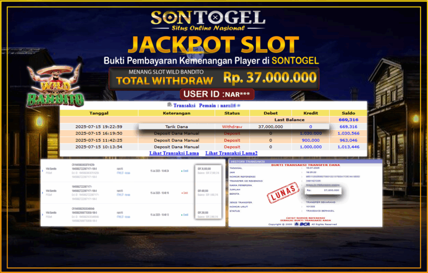 JP SONTOGEL SLOT WILD BANDITO Rp.37.000.000