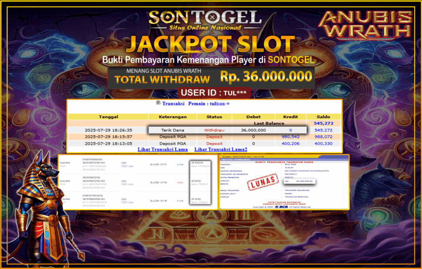 JP SONTOGEL SLOT ANUBIS WRATH Rp.36.000.000